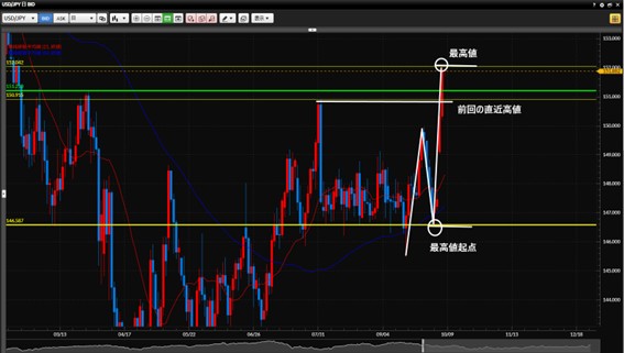 ・週足 下目線 最安値の起点を上抜けしてきた