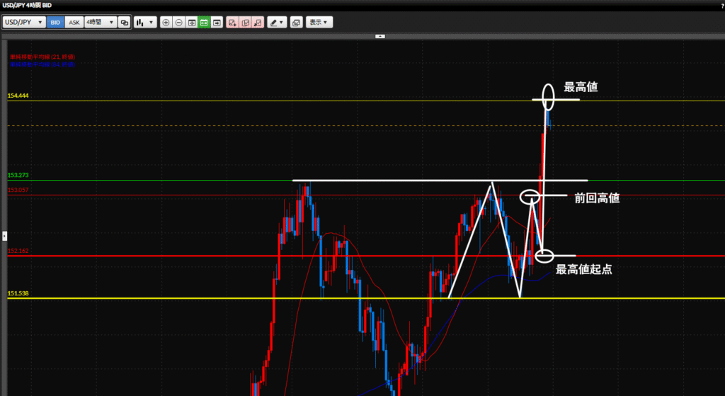 土曜の朝に上でローソク足が確定したら高値更新になるのでさらに上の勢いが強くなりそうですね。