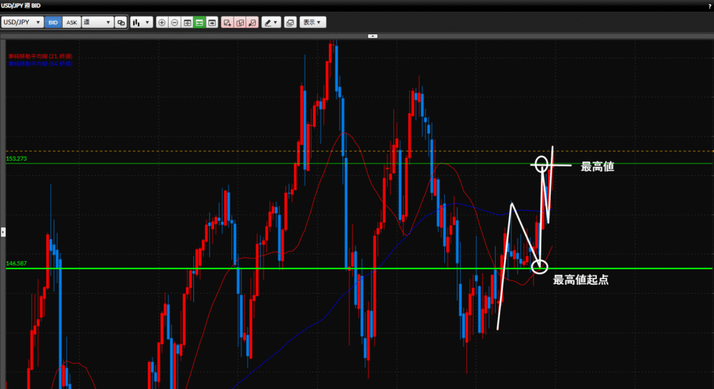 ・週足     上目線    最高値更新(まだ確定はしていない)