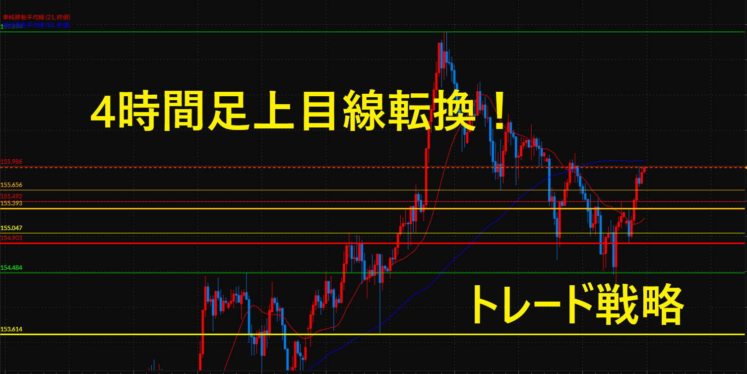 4時間足では「上目線」に転換し、「上昇トレンド」が出ている相場です。