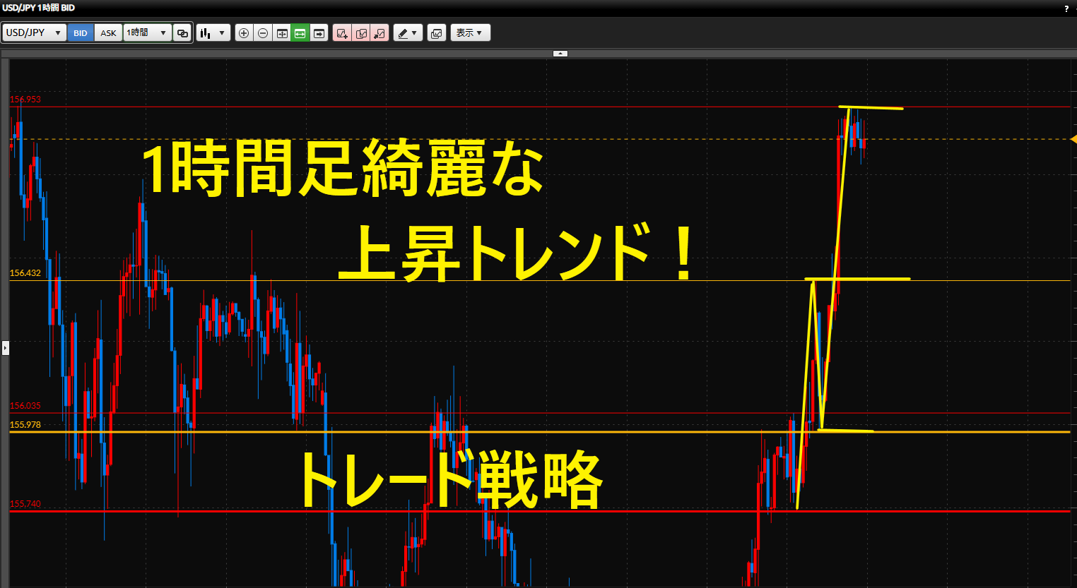 1時間足でも「上目線」で「上昇トレンド」が出ている相場です。