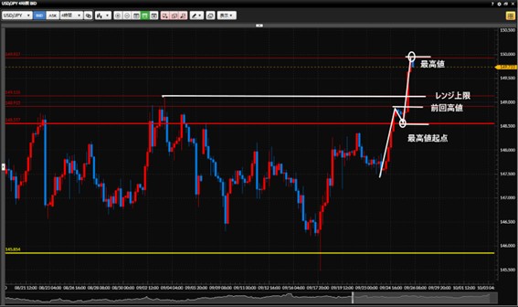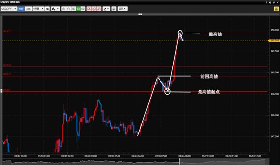 ①は1時間足で最高値をローソク足実体で確定したら5分足でのトレンドフォローでいいかと思います。