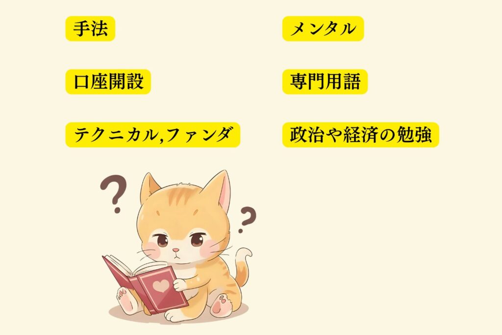 トレード手法もネットに情報が溢れすぎてて、何から学べばいいかわからないニャ…