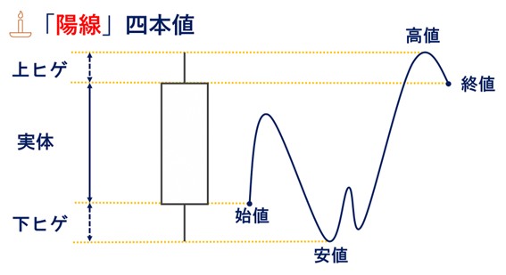 ①実体・ヒゲ・始値・終値・高値・安値、の意味