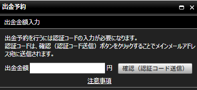 メールアドレスに届いた認証コードを入力すれば出金予約が完了になります。以上が出金手続きの一連の流れになります。